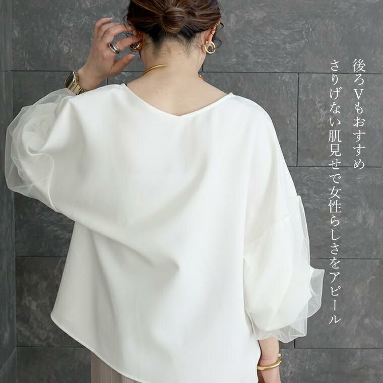 袖チュールジョーゼット2WAYブラウス 【メール便不可】
