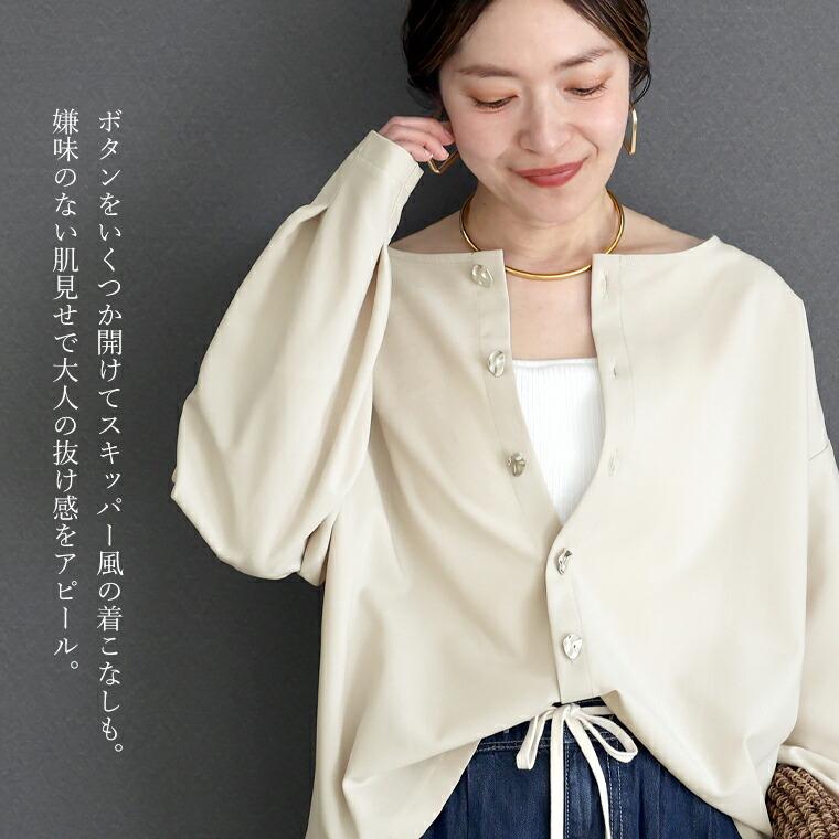 ブラウス プルオーバー 羽織り シャツ カーディガン トップス 長袖 ドロップショルダー シルバーボタン ボタン 後ろボタン バックボタン バックシャン バックコンシャス 2way ニュアンス シルバー マット 艶 華奢 着痩せ 着やすい ボートネック デコルテ シンプル キレイ見え きれいめ キレイめ 綺麗め 上品 楽ちん イージー イージー素材 ワイド ゆるめ ゆったり 落ち感 スリット リラックス おしゃれ お洒落 体型カモフラージュ 大人め ブラック クロ 黒 黒色 グレージュ カラバリ豊富 大きめ 大きい ワンマイルウエア ワンマイルウェア レディースファッション 無地 ラクチン らくちん 楽ちん 動きやすい プラスサイズ 着痩せ 華奢見え 脚長 脚長効果 ゆったりサイズ ゆる すっきり カバー 体型カバー きちんと シンプル カジュアル ナチュラル ベーシック オフィス オフィスカジュアル テレワーク 会議 食事会 ランチ 女友達 参観日 二次会 飲み会 上品 知的 女性らしい 女らしい 着映え オンライン飲み会 着回し 大人 大人カジュアル オトナ 女性 綺麗 きれい キレイ キレイめ 高見え 上質 大きいサイズ 細見え 女性服 アースカラー フリーサイズ 楽 ノンストレス 動きやすい ゆったり 高級感 母の日 プレゼント ギフト 贈り物 S M L LL 2L XL 20代 30代 40代 50代 おしゃれ パ―ト バイト 仕事 仕事用 ユニフォーム 春夏 春 夏 秋冬 秋 冬 お洒落 オシャレ かわいい 可愛い カワイイ かっこいい カッコいい FUNNY COMPANY ファニーカンパニー ふぁにーかんぱにー ファニカン