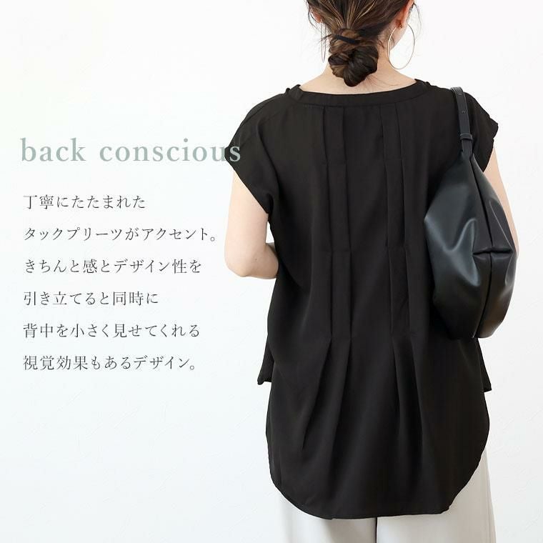 【タックプリーツが目を惹くバックシャンブラウス】