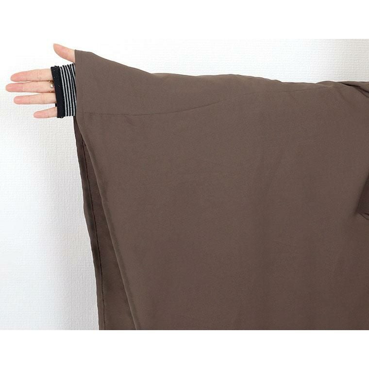 着丈はヒップが3分の2隠れるくらい。袖丈は肩から5cm下。私は二の腕が太めですが袖口にゆとりがあります。首元も一番上までボタンを閉めても苦しくありません。伸縮性はありませんが後ろがプリーツになっているのでゆったり着れます。