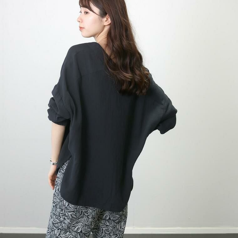 ダブルガーゼ袖口シャーリングVネックシャツ