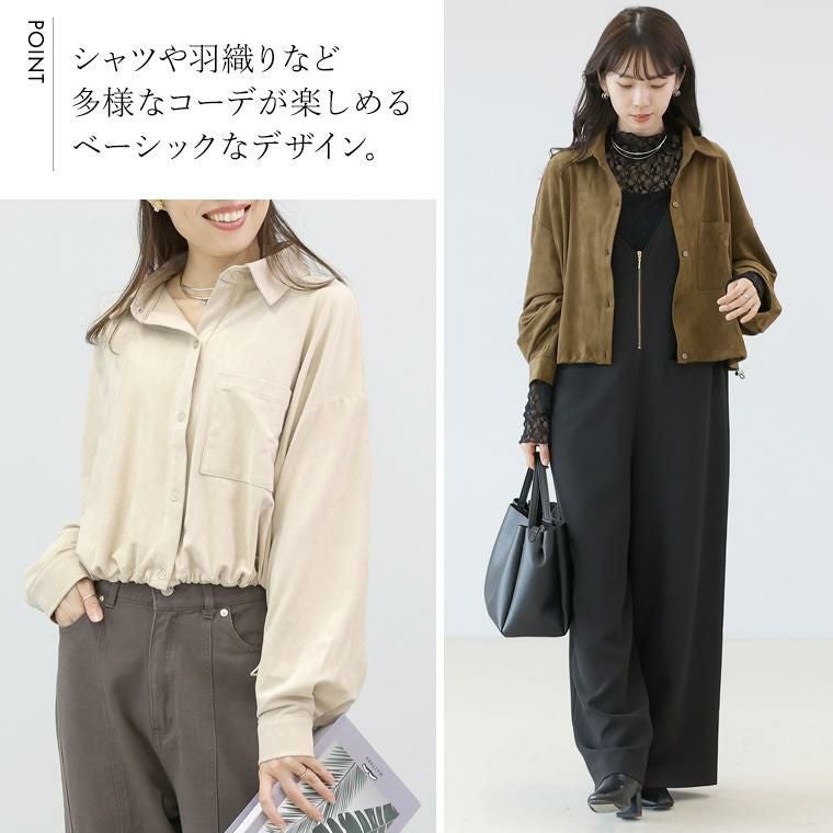 トップス シャツ 前開き 羽織り 羽織 はおり フェイクスエード スウェード ショート丈 クロップド ドロスト 裾ドロスト ドローコード 長袖シャツ 長袖ブラウス 体型カバー ポケット きれいめ キレイめ 綺麗め 上品 おしゃれ お洒落 大人め ブラウン 茶 ぶらうん チャ ちゃ ライトベージュ らいとべーじゅ カラバリ豊富 大きめ 大きい ワンマイルウエア ワンマイルウェア レディースファッション 無地 ラクチン らくちん 楽ちん 動きやすい プラスサイズ 着痩せ 華奢見え 脚長 脚長効果 ゆったりサイズ ゆる すっきり カバー 体型カバー きちんと シンプル カジュアル ナチュラル ベーシック オフィス オフィスカジュアル テレワーク リモートワーク リモート 会議 食事会 ランチ 女友達 参観日 二次会 飲み会 上品 知的 女性らしい 女らしい 着映え オンライン飲み会 着回し 大人 大人カジュアル オトナ 女性 綺麗 きれい キレイ キレイめ 高見え 上質 上品 大きめ 大きい 大きいサイズ 体型カバー 華奢見え 着痩せ 細見え 着回し 大人 大人カジュアル オトナ 女性 綺麗 女性 女性服 アースカラー フリーサイズ レディースファッション ラクチン 楽 らくちん 楽ちん ノンストレス 動きやすい プラスサイズ 着回し プラスサイズ ゆったり ゆったりサイズ ゆる すっきり シンプル 無地 きれい キレイ きれいめ キレイめ 高見え 上質 高級感 母の日 プレゼント ギフト 贈り物 S M L LL 2L XL 20代 30代 40代 50代 おしゃれ パ―ト バイト 仕事 仕事用 ユニフォーム 春夏 春 夏 秋冬 秋 冬 お洒落 オシャレ かわいい 可愛い カワイイ かっこいい カッコいい FUNNY COMPANY ファニーカンパニー ふぁにーかんぱにー ファニカン