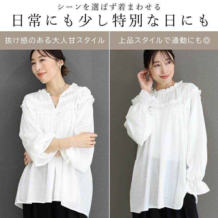 【品よく華やぐ大人のフリルブラウス】
