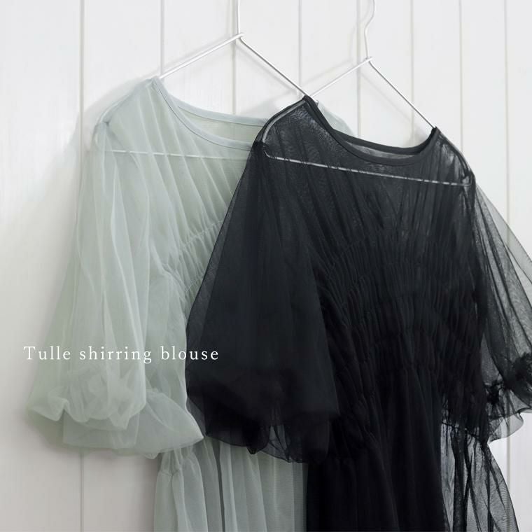 チュールシャーリングブラウス 【メール便可/ma3】