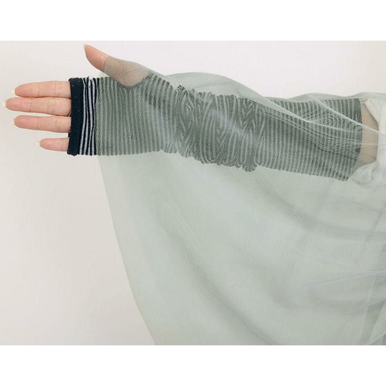 着丈はヒップから4cm下。袖丈は丁度肘くらい。軽くて柔らかい生地です。透け感がたっぷりあり見た目にも涼しいです。袖丈着丈が長めでさりげなく体型カバーしてくれそうです。
