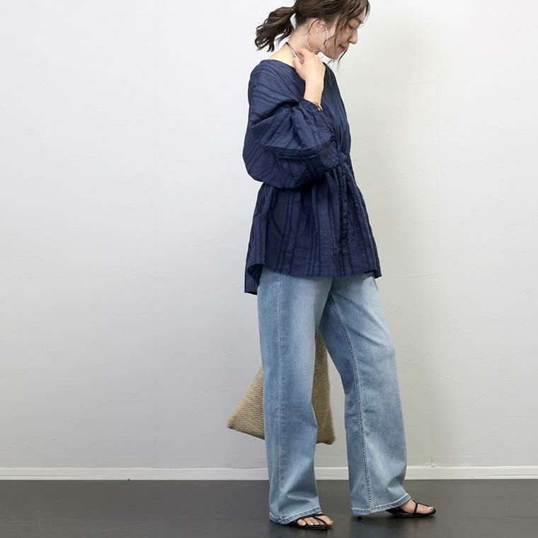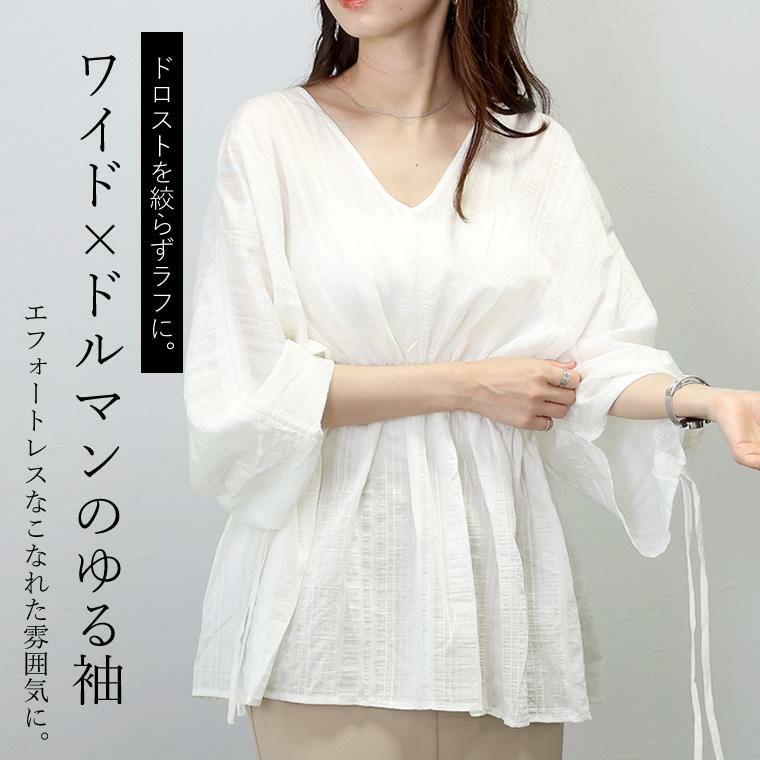 シアーストライプ袖ドロストブラウス