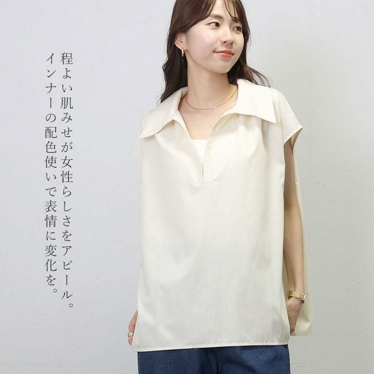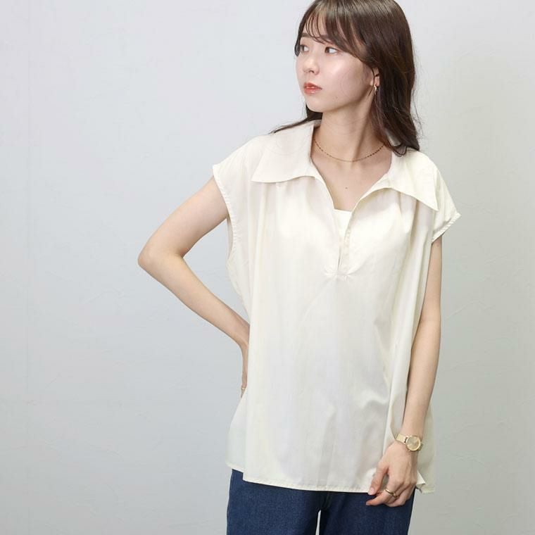 シャツ ブラウス トップス 布帛 平織り フレンチ フレンチスリーブ ノースリーブ 華奢 着痩せ スキッパー 深V Vネック シャツ襟 襟 デコルテ シンプル キレイ見え きれいめ キレイめ 綺麗め 上品 楽ちん イージー イージー素材 ルーズ ゆるめ PO ゆったり ワイド リラックス ギャザー 立体 ドレープ おしゃれ お洒落 体型カモフラージュ 大人め ネイビー 紺 アイボリー オフ カラバリ豊富 大きめ 大きい ワンマイルウエア ワンマイルウェア レディースファッション 無地 ラクチン らくちん 楽ちん 動きやすい プラスサイズ 着痩せ 華奢見え 脚長 脚長効果 ゆったりサイズ ゆる すっきり カバー 体型カバー きちんと シンプル カジュアル ナチュラル ベーシック オフィス オフィスカジュアル テレワーク 会議 食事会 ランチ 女友達 参観日 二次会 飲み会 上品 知的 女性らしい 女らしい 着映え オンライン飲み会 着回し 大人 大人カジュアル オトナ 女性 綺麗 きれい キレイ キレイめ 高見え 上質 大きいサイズ 細見え 女性服 アースカラー フリーサイズ 楽 ノンストレス 動きやすい ゆったり 高級感 母の日 プレゼント ギフト 贈り物 S M L LL 2L XL 20代 30代 40代 50代 おしゃれ パ―ト バイト 仕事 仕事用 ユニフォーム 春夏 春 夏 秋冬 秋 冬 お洒落 オシャレ かわいい 可愛い カワイイ かっこいい カッコいい FUNNY COMPANY ファニーカンパニー ふぁにーかんぱにー ファニカン