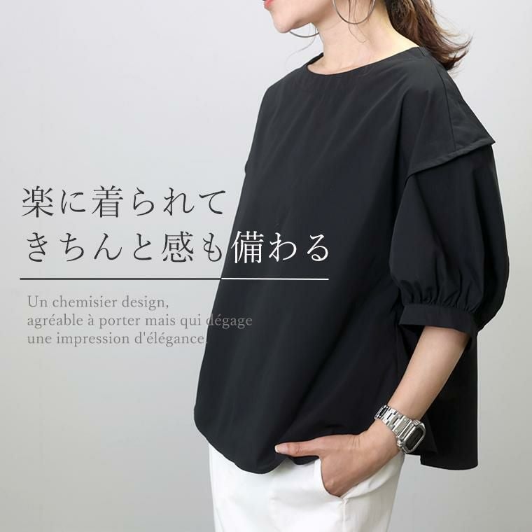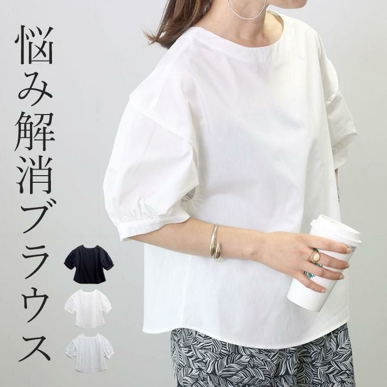 ブラウス ツイル 布帛 トップス ハリ 5分袖 五分袖 パフスリーブ パフ 立体 袖デザイン デザイン袖 華奢 着痩せ ボートネック デコルテ シンプル キレイ見え きれいめ キレイめ 綺麗め 上品 楽ちん イージー イージー素材 ゆったり リラックス おしゃれ お洒落 体型カモフラージュ 大人め ブラック クロ 黒 黒色 白 白色 オフホワイト ホワイト ストライプ 白黒カラバリ豊富 大きめ 大きい ワンマイルウエア ワンマイルウェア レディースファッション 無地 ラクチン らくちん 楽ちん 動きやすい プラスサイズ 着痩せ 華奢見え 脚長 脚長効果 ゆったりサイズ ゆる すっきり カバー 体型カバー きちんと シンプル カジュアル ナチュラル ベーシック オフィス オフィスカジュアル テレワーク 会議 食事会 ランチ 女友達 参観日 二次会 飲み会 上品 知的 女性らしい 女らしい 着映え オンライン飲み会 着回し 大人 大人カジュアル オトナ 女性 綺麗 きれい キレイ キレイめ 高見え 上質 大きいサイズ 細見え 女性服 アースカラー フリーサイズ 楽 ノンストレス 動きやすい ゆったり 高級感 母の日 プレゼント ギフト 贈り物 S M L LL 2L XL 20代 30代 40代 50代 おしゃれ パ―ト バイト 仕事 仕事用 ユニフォーム 春夏 春 夏 秋冬 秋 冬 お洒落 オシャレ かわいい 可愛い カワイイ かっこいい カッコいい FUNNY COMPANY ファニーカンパニー ふぁにーかんぱにー ファニカン