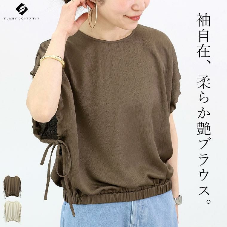 トップス ブラウス シワ加工 サテン ドロスト 裾ゴム きれいめ キレイめ 綺麗め 上品 おしゃれ お洒落 大人め ブラウン 茶色 ベージュ カラバリ豊富 大きめ 大きい ワンマイルウエア ワンマイルウェア レディースファッション 無地 ラクチン らくちん 楽ちん 動きやすい プラスサイズ 着痩せ 華奢見え 脚長 脚長効果 ゆったりサイズ ゆる すっきり カバー 体型カバー きちんと シンプル カジュアル ナチュラル ベーシック オフィス オフィスカジュアル テレワーク リモートワーク リモート 会議 食事会 ランチ 女友達 参観日 二次会 飲み会 上品 知的 女性らしい 女らしい 着映え オンライン飲み会 着回し 大人 大人カジュアル オトナ 女性 綺麗 きれい キレイ キレイめ 高見え 上質 上品 大きめ 大きい 大きいサイズ 体型カバー 華奢見え 着痩せ 細見え 着回し 大人 大人カジュアル オトナ 女性 綺麗 女性 女性服 アースカラー フリーサイズ レディースファッション ラクチン 楽 らくちん 楽ちん ノンストレス 動きやすい プラスサイズ 着回し プラスサイズ ゆったり ゆったりサイズ ゆる すっきり シンプル 無地 きれい キレイ きれいめ キレイめ 高見え 上質 高級感 母の日 プレゼント ギフト 贈り物 S M L LL 2L XL 20代 30代 40代 50代 おしゃれ パ―ト バイト 仕事 仕事用 ユニフォーム 春夏 春 夏 秋冬 秋 冬 お洒落 オシャレ かわいい 可愛い カワイイ かっこいい カッコいい FUNNY COMPANY ファニーカンパニー ふぁにーかんぱにー ファニカン
