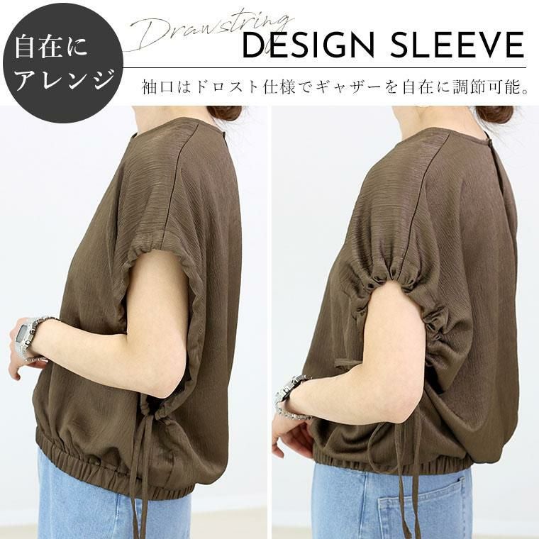 シワ加工サテン袖口ドロストブラウス 【メール便可/ma3】