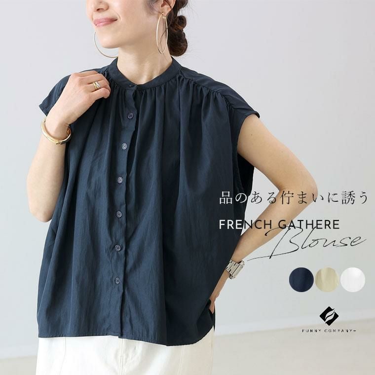 トップス ブラウス シワ加工 フレンチスリーブ 前開き ギャザー きれいめ キレイめ 綺麗め 上品 おしゃれ お洒落 大人め ネイビー 紺色 ベージュ オフホワイト 白 カラバリ豊富 大きめ 大きい ワンマイルウエア ワンマイルウェア レディースファッション 無地 ラクチン らくちん 楽ちん 動きやすい プラスサイズ 着痩せ 華奢見え 脚長 脚長効果 ゆったりサイズ ゆる すっきり カバー 体型カバー きちんと シンプル カジュアル ナチュラル ベーシック オフィス オフィスカジュアル テレワーク リモートワーク リモート 会議 食事会 ランチ 女友達 参観日 二次会 飲み会 上品 知的 女性らしい 女らしい 着映え オンライン飲み会 着回し 大人 大人カジュアル オトナ 女性 綺麗 きれい キレイ キレイめ 高見え 上質 上品 大きめ 大きい 大きいサイズ 体型カバー 華奢見え 着痩せ 細見え 着回し 大人 大人カジュアル オトナ 女性 綺麗 女性 女性服 アースカラー フリーサイズ レディースファッション ラクチン 楽 らくちん 楽ちん ノンストレス 動きやすい プラスサイズ 着回し プラスサイズ ゆったり ゆったりサイズ ゆる すっきり シンプル 無地 きれい キレイ きれいめ キレイめ 高見え 上質 高級感 母の日 プレゼント ギフト 贈り物 S M L LL 2L XL 20代 30代 40代 50代 おしゃれ パ―ト バイト 仕事 仕事用 ユニフォーム 春夏 春 夏 秋冬 秋 冬 お洒落 オシャレ かわいい 可愛い カワイイ かっこいい カッコいい FUNNY COMPANY ファニーカンパニー ふぁにーかんぱにー ファニカン
