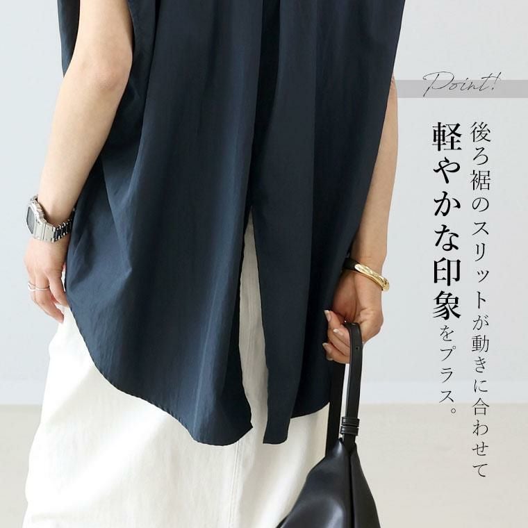 着丈はヒップから10cm下。袖丈は肩から8cm下。軽い着心地でサラッとした滑らかな生地感です。身幅には十分ゆとりがありラインを拾いません。肩が隠れるノースリーブで一枚で着やすいです。