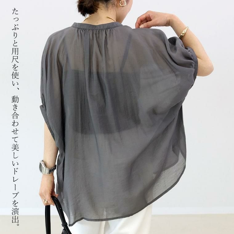 ブラウス シャツ シャツブラウス シアー トップス ドルマンスリーブ フレンチ ドルマン ギャザー袖 ギャザー 華奢 着痩せ シアー 透け 着やすい ノーカラー スキッパー デコルテ シンプル キレイ見え きれいめ キレイめ 綺麗め 上品 楽ちん イージー イージー素材 ルーズ ゆるめ ゆったり 軽量 軽い ボイル ボイル ドレープ リラックス おしゃれ お洒落 体型カモフラージュ 大人め ブラック クロ 黒 黒色 チャコール ちゃこーる 白 オフホワイト ホワイト カラバリ豊富 大きめ 大きい ワンマイルウエア ワンマイルウェア レディースファッション 無地 ラクチン らくちん 楽ちん 動きやすい プラスサイズ 着痩せ 華奢見え 脚長 脚長効果 ゆったりサイズ ゆる すっきり カバー 体型カバー きちんと シンプル カジュアル ナチュラル ベーシック オフィス オフィスカジュアル テレワーク 会議 食事会 ランチ 女友達 参観日 二次会 飲み会 上品 知的 女性らしい 女らしい 着映え オンライン飲み会 着回し 大人 大人カジュアル オトナ 女性 綺麗 きれい キレイ キレイめ 高見え 上質 大きいサイズ 細見え 女性服 アースカラー フリーサイズ 楽 ノンストレス 動きやすい ゆったり 高級感 母の日 プレゼント ギフト 贈り物 S M L LL 2L XL 20代 30代 40代 50代 おしゃれ パ―ト バイト 仕事 仕事用 ユニフォーム 春夏 春 夏 秋冬 秋 冬 お洒落 オシャレ かわいい 可愛い カワイイ かっこいい カッコいい FUNNY COMPANY ファニーカンパニー ふぁにーかんぱにー ファニカン