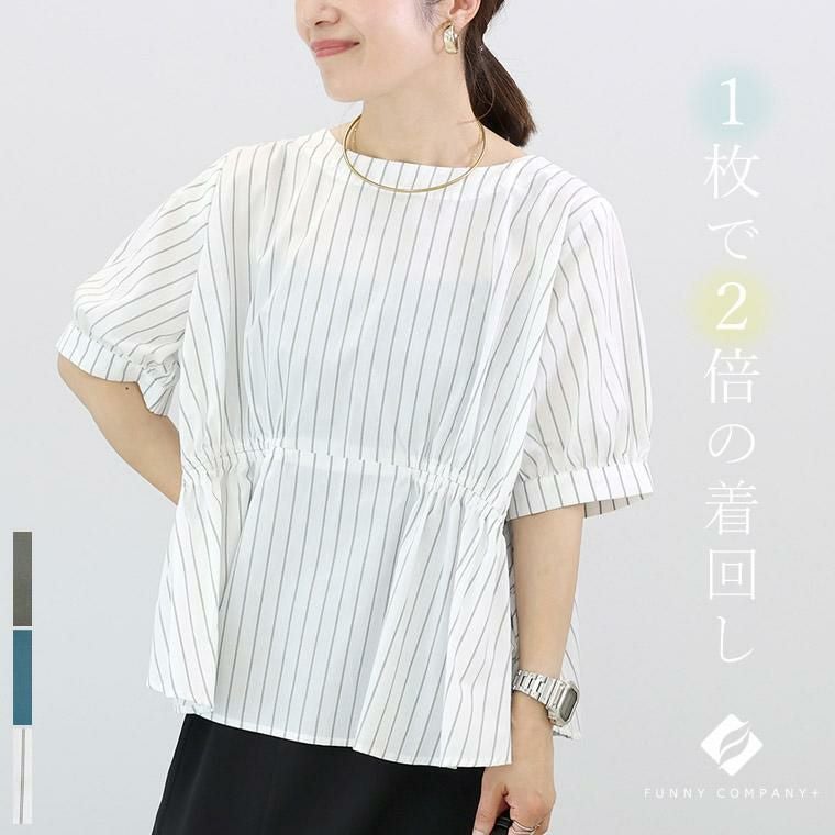 トップス ブラウス 2WAY ギャザー T/C 布帛 前後2WAY きれいめ キレイめ 綺麗め 上品 おしゃれ お洒落 大人め チャコール ブルー 青 ストライプ カラバリ豊富 大きめ 大きい ワンマイルウエア ワンマイルウェア レディースファッション 無地 ラクチン らくちん 楽ちん 動きやすい プラスサイズ 着痩せ 華奢見え 脚長 脚長効果 ゆったりサイズ ゆる すっきり カバー 体型カバー きちんと シンプル カジュアル ナチュラル ベーシック オフィス オフィスカジュアル テレワーク リモートワーク リモート 会議 食事会 ランチ 女友達 参観日 二次会 飲み会 上品 知的 女性らしい 女らしい 着映え オンライン飲み会 着回し 大人 大人カジュアル オトナ 女性 綺麗 きれい キレイ キレイめ 高見え 上質 上品 大きめ 大きい 大きいサイズ 体型カバー 華奢見え 着痩せ 細見え 着回し 大人 大人カジュアル オトナ 女性 綺麗 女性 女性服 アースカラー フリーサイズ レディースファッション ラクチン 楽 らくちん 楽ちん ノンストレス 動きやすい プラスサイズ 着回し プラスサイズ ゆったり ゆったりサイズ ゆる すっきり シンプル 無地 きれい キレイ きれいめ キレイめ 高見え 上質 高級感 母の日 プレゼント ギフト 贈り物 S M L LL 2L XL 20代 30代 40代 50代 おしゃれ パ―ト バイト 仕事 仕事用 ユニフォーム 春夏 春 夏 秋冬 秋 冬 お洒落 オシャレ かわいい 可愛い カワイイ かっこいい カッコいい FUNNY COMPANY ファニーカンパニー ふぁにーかんぱにー ファニカン