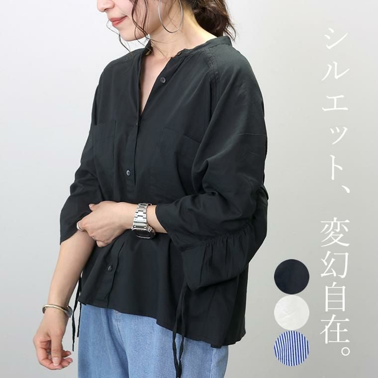 シャツ シャツブラウス ブラウス トップス 布帛 綿 コットン インド綿 インド 7分袖 5分袖 半袖 フレンチスリーブ ノースリーブ デザイン デザインスリーブ マルチスリーブ ギャザー リボン ドルマン 華奢 着痩せ シアー 着やすい バンドカラー デコルテ シンプル キレイ見え きれいめ キレイめ 綺麗め 上品 楽ちん 両ポケ ポケット ルーズ ゆるめ ゆったり 無地 ストライプ リラックス おしゃれ お洒落 体型カモフラージュ 大人め ブラック クロ 黒 黒色 白 オフホワイト ホワイト ストライプ ブルー 青 カラバリ豊富 大きめ 大きい ワンマイルウエア ワンマイルウェア レディースファッション 無地 ラクチン らくちん 楽ちん 動きやすい プラスサイズ 着痩せ 華奢見え 脚長 脚長効果 ゆったりサイズ ゆる すっきり カバー 体型カバー きちんと シンプル カジュアル ナチュラル ベーシック オフィス オフィスカジュアル テレワーク 会議 食事会 ランチ 女友達 参観日 二次会 飲み会 上品 知的 女性らしい 女らしい 着映え オンライン飲み会 着回し 大人 大人カジュアル オトナ 女性 綺麗 きれい キレイ キレイめ 高見え 上質 大きいサイズ 細見え 女性服 アースカラー フリーサイズ 楽 ノンストレス 動きやすい ゆったり 高級感 母の日 プレゼント ギフト 贈り物 S M L LL 2L XL 20代 30代 40代 50代 おしゃれ パ―ト バイト 仕事 仕事用 ユニフォーム 春夏 春 夏 秋冬 秋 冬 お洒落 オシャレ かわいい 可愛い カワイイ かっこいい カッコいい FUNNY COMPANY ファニーカンパニー ふぁにーかんぱにー ファニカン