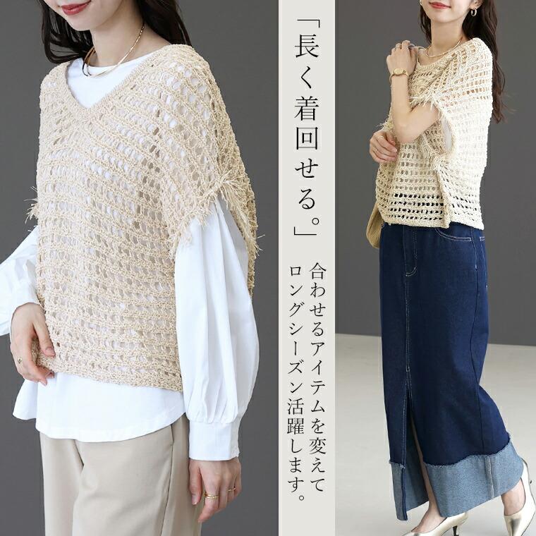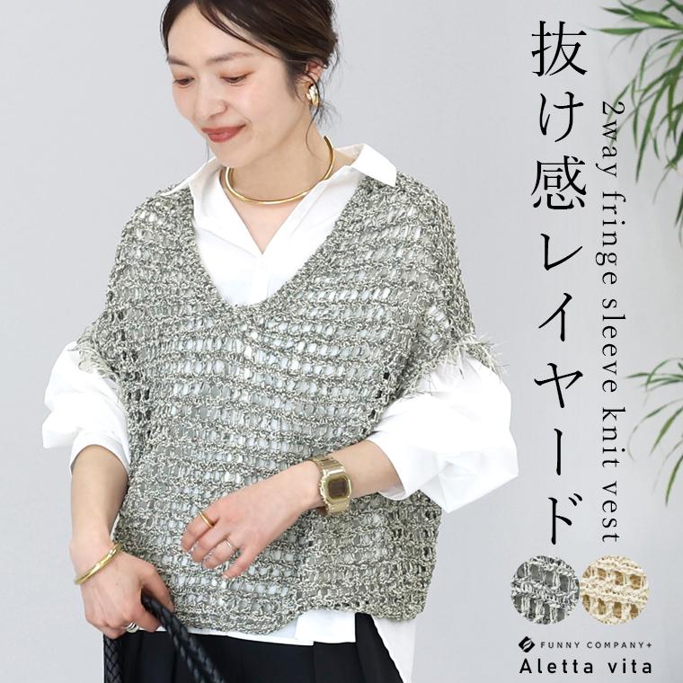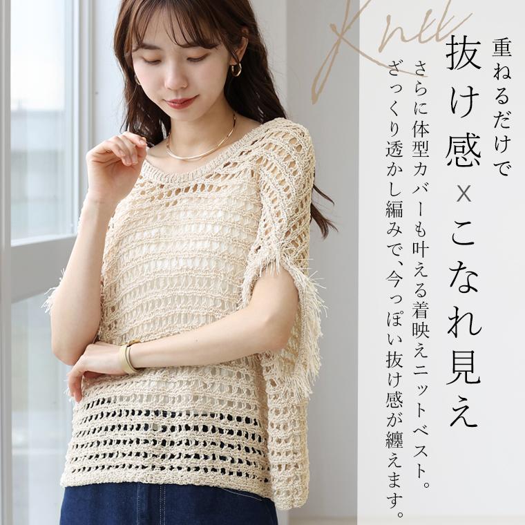 トップス ベスト ニット ニットベスト ざっくり メッシュ メッシュニット 2way 透かし編み フリンジ 袖フリンジ 体型カバー シアーニット サマーニット レイヤードコーデ レイヤード 透け感 重ね着 軽い トップス 半袖 華奢 着痩せ 伸縮 着やすい Vネック Uネック 短丈 クロップド丈 ショート丈 シンプル キレイ見え ゆったりシルエット きれいめ キレイめ 綺麗め 上品 おしゃれ お洒落 大人め グレー ベージュ カラバリ豊富 大きめ 大きい ワンマイルウエア ワンマイルウェア レディースファッション 無地 ラクチン らくちん 楽ちん 動きやすい プラスサイズ 着痩せ 華奢見え 脚長 脚長効果 ゆったりサイズ ゆる すっきり カバー 体型カバー きちんと シンプル カジュアル ナチュラル ベーシック オフィス オフィスカジュアル テレワーク リモートワーク リモート 会議 食事会 ランチ 女友達 参観日 二次会 飲み会 上品 知的 女性らしい 女らしい 着映え オンライン飲み会 着回し 大人 大人カジュアル オトナ 女性 綺麗 きれい キレイ キレイめ 高見え 上質 上品 大きめ 大きい 大きいサイズ 体型カバー 華奢見え 着痩せ 細見え 着回し 大人 大人カジュアル オトナ 女性 綺麗 女性 女性服 アースカラー フリーサイズ レディースファッション ラクチン 楽 らくちん 楽ちん ノンストレス 動きやすい プラスサイズ 着回し プラスサイズ ゆったり ゆったりサイズ ゆる すっきり シンプル 無地 きれい キレイ きれいめ キレイめ 高見え 上質 高級感 母の日 プレゼント ギフト 贈り物 S M L LL 2L XL 20代 30代 40代 50代 おしゃれ パ―ト バイト 仕事 仕事用 ユニフォーム 春夏 春 夏 秋冬 秋 冬 お洒落 オシャレ かわいい 可愛い カワイイ かっこいい カッコいい FUNNY COMPANY ファニーカンパニー ふぁにーかんぱにー ファニカン