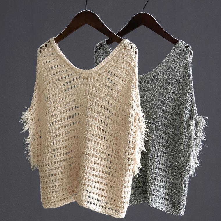 【未発売新作】新作72H限定クーポン利用で10%OFF★4月22日10時発売開始★透かし編み袖フリンジ2WAYベスト 【メール便可/ma3】