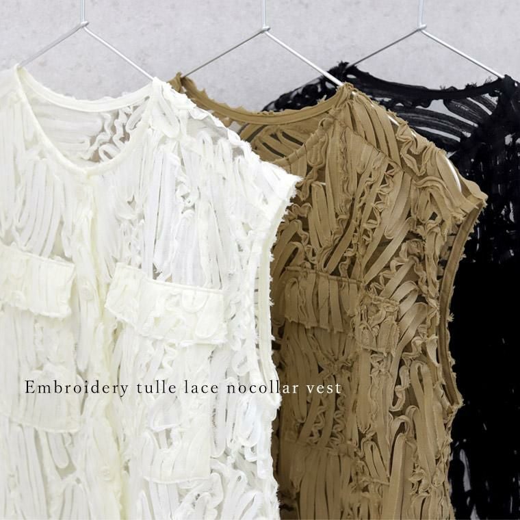 刺繍チュールレースノーカラーベスト