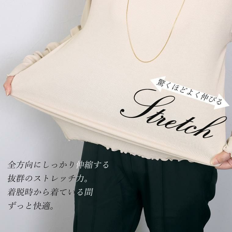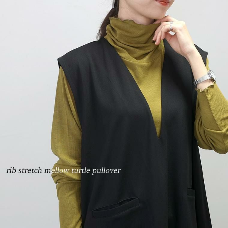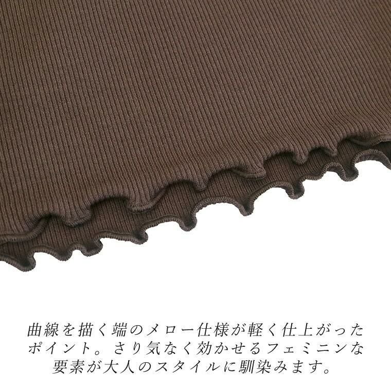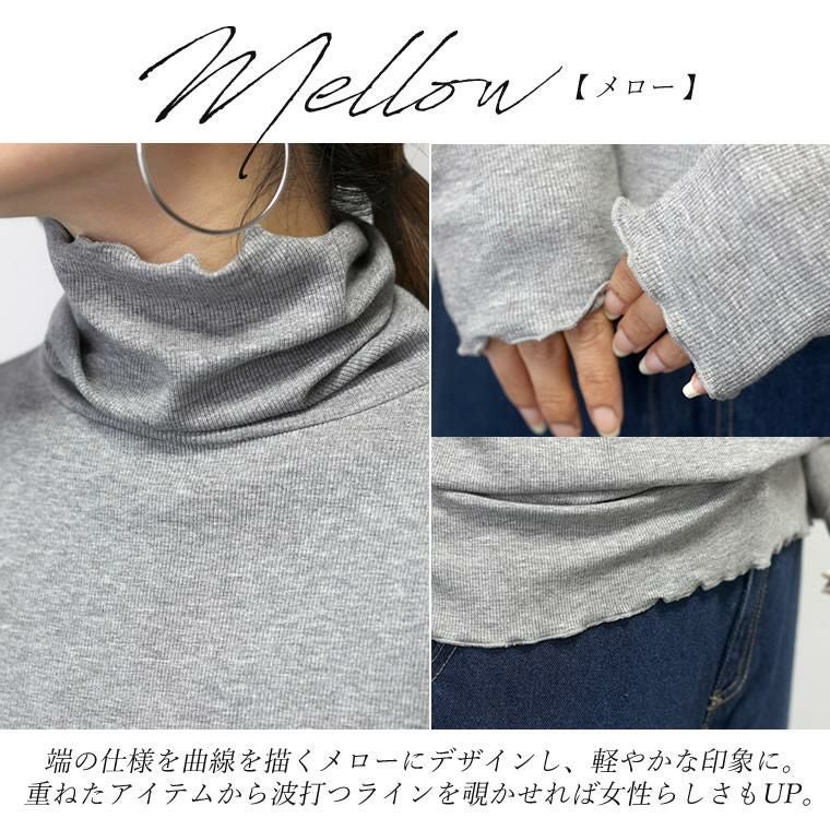 細リブストレッチメロータートルプルオーバー 端の仕様を曲線を描くメロー仕様に仕上げた大人フェミニンな タートルカットソー。なめらかな生地感で伸縮性にも優れ、素肌に着ても とっても心地よい肌触り。ワンピースやトップス、ジャケットのINに重ねるだけで 波打つメロー仕様がさり気なく覗き、女性らしさを引き立ててくれます。 ほど良くゆとりを持たせたシルエットで、一枚での着用も可能です。 自然とくしゅっとなる柔らかなタートルネックもポイント。メローの甘さが 苦手な方は内側に折り込んでもOK。重ねるアイテムを変えて 長い季節たっぷり活躍してくれる、使い勝手の良い一着です。