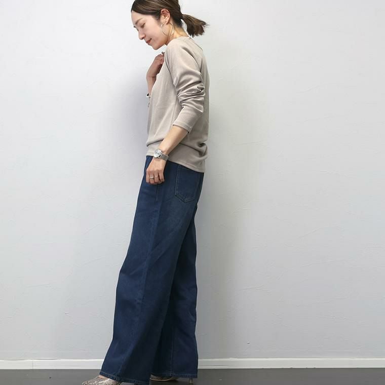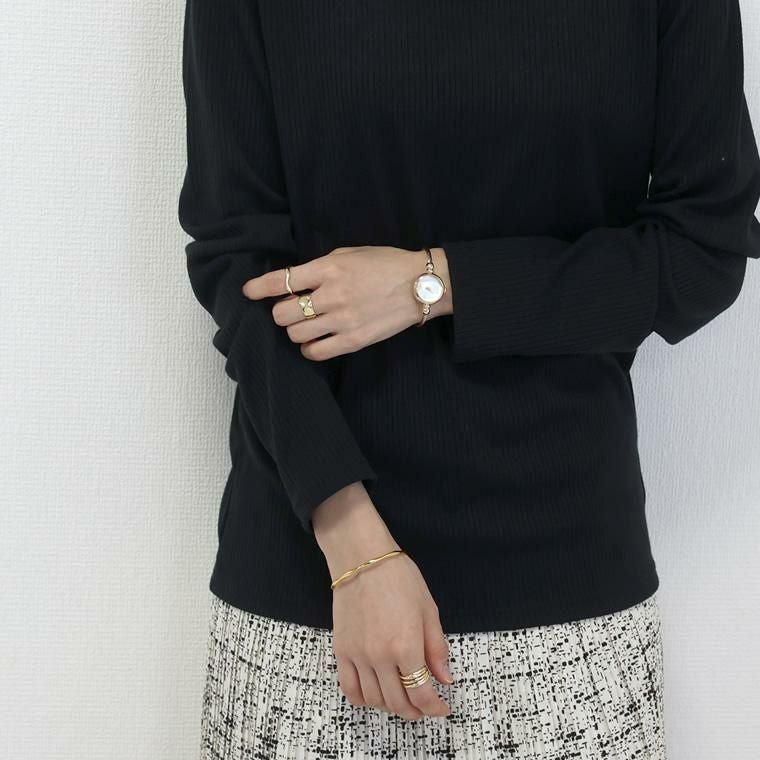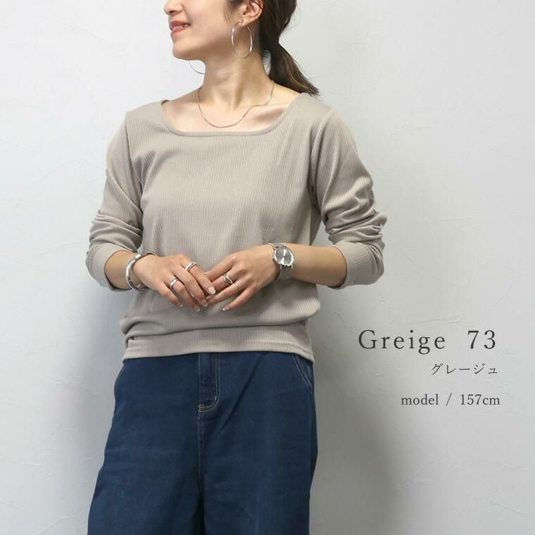 スクエアネックリブカットソー 直線的な胸元が潔い女性らしさを引き立てるスクエアネックの リブカットソー。鎖骨の見えるほど良い開きが、一枚で着た時はもちろん ジャケットやベストなどのインに重ねた時もすっきり抜け感を誘います。 生地は伸縮素材の入ったリブ生地。全方向にしっかり伸びるので動きを 邪魔せず、細リブが縦ラインを強調しすっきり見せてくれる効果も。シルエットは 流行りに左右されず長く愛用できるシンプルデザイン。3シーズンたっぷり 活躍し、名バイプレイヤーになること間違いなしの一着です。