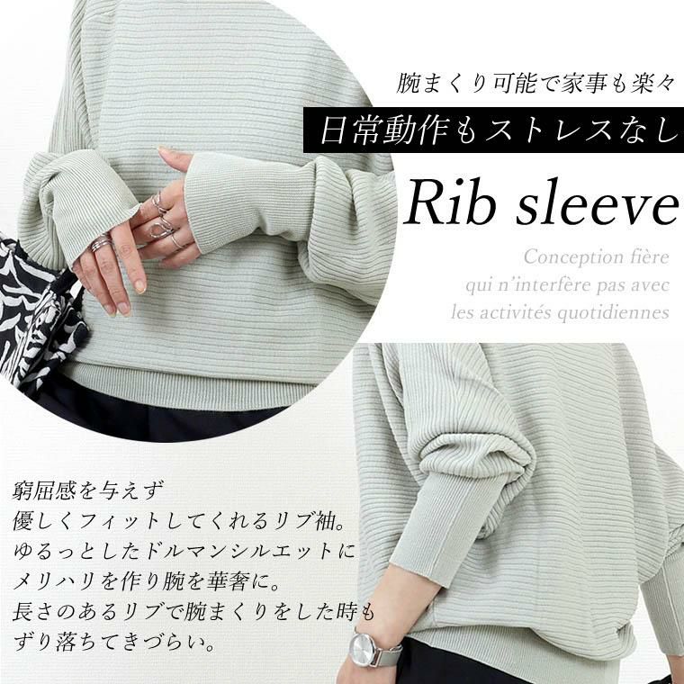 期間限定セール★リネンライクリブ袖ドルマンプルオーバー 【メール便不可】 【返品交換不可】