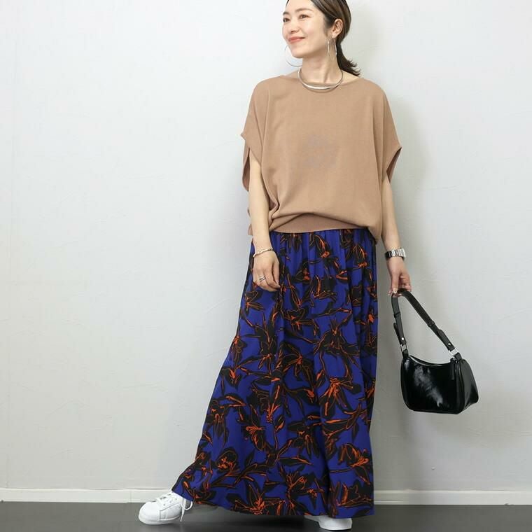 「着痩せ・着心地・着回し」大人の女性の夏のお悩みを解消する優秀プルオーバーの登場です。ボディーラインを拾わずゆったり着られるドルマンシルエットで着心地リラクシング。ゆとりのあるサイジングながらも、裾に向かって自然に窄まるコクーンなラインですっきり、どんなボトムともバランスよく着られます。大人女子から支持が高いボートネックとVネックの前後2wayで、お好みで着替えられるのが嬉しい。程よく開いた襟周りは女性らしさと抜け感を誘います。綿を織り込んださらりとした肌触りのハイゲージニットで、汗ばむ季節も快適に。