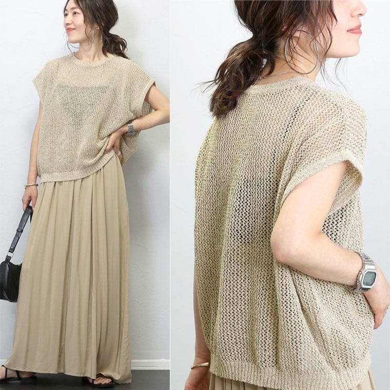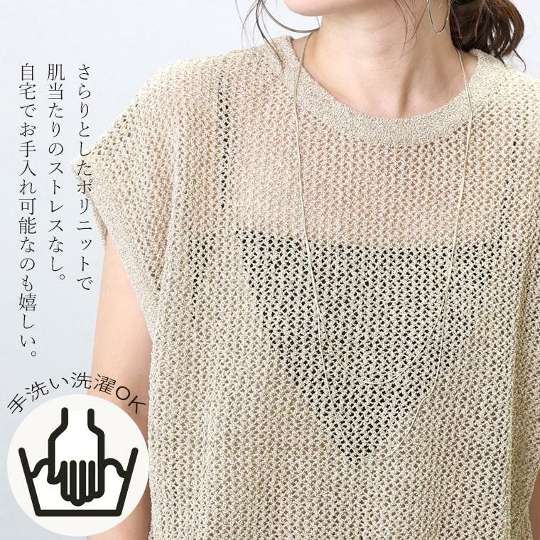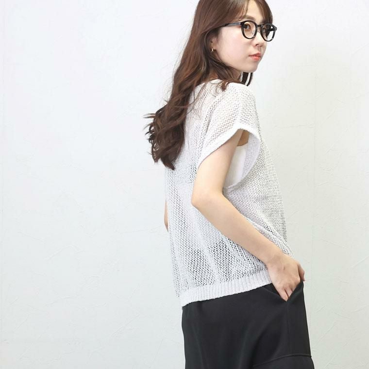 フレンチスリーブメッシュニットプルオーバー