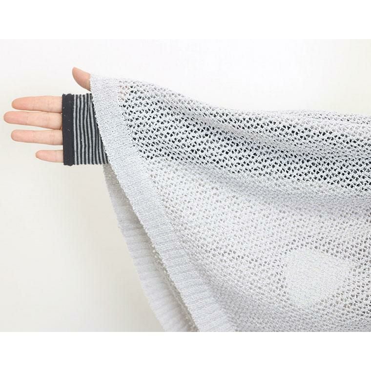 着丈はヒップが3分の2隠れるくらい。袖丈は肩から12cm下。伸縮性のある素材です。首まわりの開きはそんなに広くありません。身幅がたっぷりありシンプルなTシャツやカットソーの上に着るだけで可愛いレイヤードスタイルが出来ます。メッシュなので夏も使え◎。