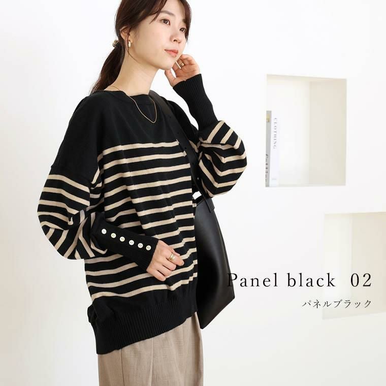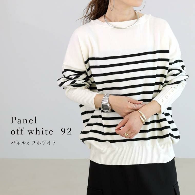 プルオーバー ニット トップス ハイゲージ 長袖 ドロップショルダー ボーダー パネルボーダー コアスパンヤーン ストレッチ 袖ボタン 螺鈿 貝 シェル ボタン 華奢 着痩せ 透けない 伸縮 着やすい ボートネック デコルテ シンプル キレイ見え きれいめ キレイめ 綺麗め 上品 楽ちん イージー イージー素材 ルーズ ゆるめ PO ゆったり コクーン 体型カバー リラックス おしゃれ お洒落 体型カモフラージュ 大人め ブラック クロ 黒 黒色 白 オフホワイト ホワイト カラバリ豊富 大きめ 大きい ワンマイルウエア ワンマイルウェア レディースファッション 無地 ラクチン らくちん 楽ちん 動きやすい プラスサイズ 着痩せ 華奢見え 脚長 脚長効果 ゆったりサイズ ゆる すっきり カバー 体型カバー きちんと シンプル カジュアル ナチュラル ベーシック オフィス オフィスカジュアル テレワーク 会議 食事会 ランチ 女友達 参観日 二次会 飲み会 上品 知的 女性らしい 女らしい 着映え オンライン飲み会 着回し 大人 大人カジュアル オトナ 女性 綺麗 きれい キレイ キレイめ 高見え 上質 大きいサイズ 細見え 女性服 アースカラー フリーサイズ 楽 ノンストレス 動きやすい ゆったり 高級感 母の日 プレゼント ギフト 贈り物 S M L LL 2L XL 20代 30代 40代 50代 おしゃれ パ―ト バイト 仕事 仕事用 ユニフォーム 春夏 春 夏 秋冬 秋 冬 お洒落 オシャレ かわいい 可愛い カワイイ かっこいい カッコいい FUNNY COMPANY ファニーカンパニー ふぁにーかんぱにー ファニカン