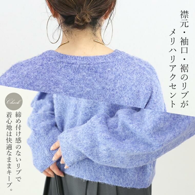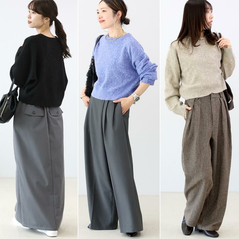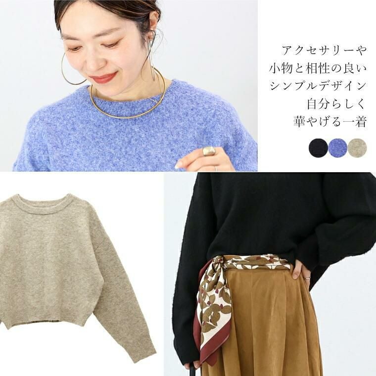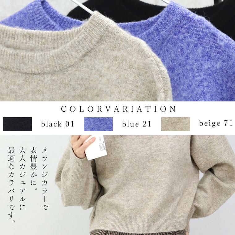 素材もシルエットも「黄金比」な万能ニット。素材は、ポリエステル・アクリル・ナイロン・ポリウレタンの混紡。ふんわり軽くて暖か、伸縮性にも優れ伸びやかで快適、しかも自宅で手洗いが可能というメリットが凝縮。ベーシックなブラックと、表情豊かなメランジカラーが魅力の3色展開です。シルエットはワイドな身幅とたっぷり袖幅でリラックス感がありつつ華奢見え。しかもジャストな着丈でさっと着るだけで好バランス。黄金比率のシルエットで自然にスタイルアップします。シンプルなのに着映える、大人の毎日に頼れる一枚です。