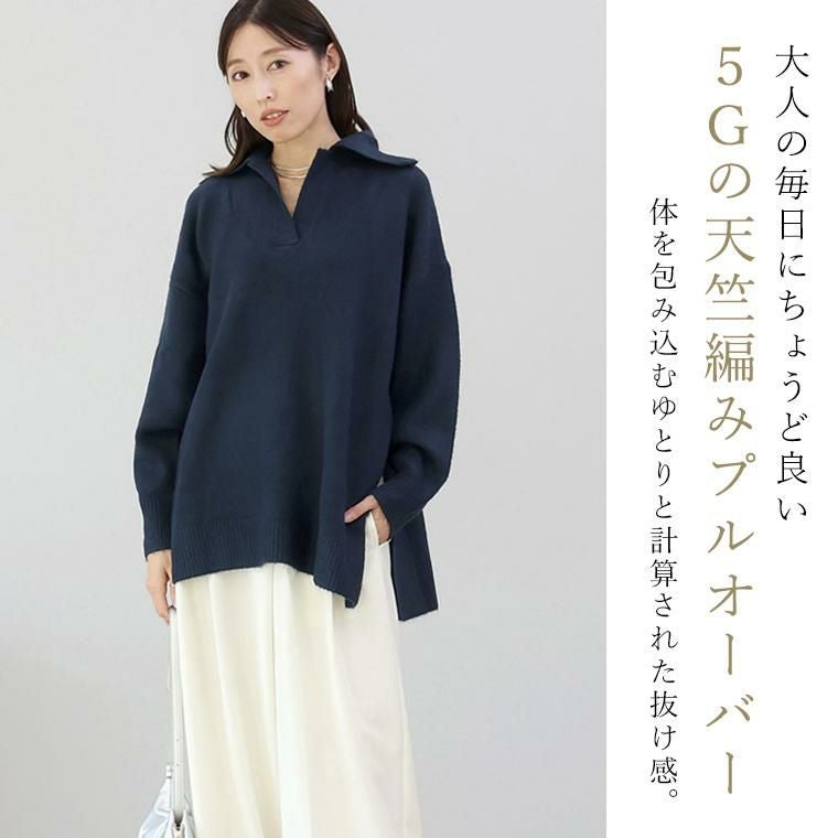 5G天竺サイドスリットスキッパーニットプルオーバー 【メール便不可】