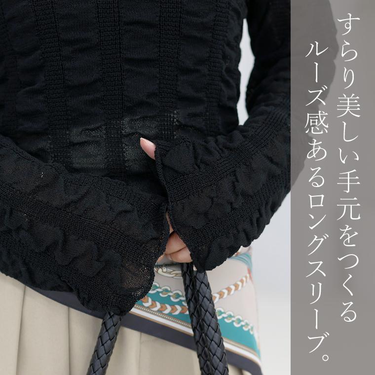 トップス プルオーバー ニット 長袖 ロングスリーブ シボ シュリンク くしゅっと感 体型カバー シアーニット 春ニット スプリングニット シアー 透け感 ジャスト丈 レイヤード 重ね着 軽い トップス 長袖 半袖 5分袖 華奢 着痩せ 伸縮 着やすい ラウンドネック クルーネック シンプル 天竺 ストライプ編み ギャザー きれいめ キレイめ 綺麗め 上品 おしゃれ お洒落 大人め ブラック ぶらっく 黒 くろ クロ ライトグレー らいとぐれー グレー ぐれー 灰色 アイボリー あいぼりー オフ カラバリ豊富 大きめ 大きい ワンマイルウエア ワンマイルウェア レディースファッション 無地 ラクチン らくちん 楽ちん 動きやすい プラスサイズ 着痩せ 華奢見え 脚長 脚長効果 ゆったりサイズ ゆる すっきり カバー 体型カバー きちんと シンプル カジュアル ナチュラル ベーシック オフィス オフィスカジュアル テレワーク リモートワーク リモート 会議 食事会 ランチ 女友達 参観日 二次会 飲み会 上品 知的 女性らしい 女らしい 着映え オンライン飲み会 着回し 大人 大人カジュアル オトナ 女性 綺麗 きれい キレイ キレイめ 高見え 上質 上品 大きめ 大きい 大きいサイズ 体型カバー 華奢見え 着痩せ 細見え 着回し 大人 大人カジュアル オトナ 女性 綺麗 女性 女性服 アースカラー フリーサイズ レディースファッション ラクチン 楽 らくちん 楽ちん ノンストレス 動きやすい プラスサイズ 着回し プラスサイズ ゆったり ゆったりサイズ ゆる すっきり シンプル 無地 きれい キレイ きれいめ キレイめ 高見え 上質 高級感 母の日 プレゼント ギフト 贈り物 S M L LL 2L XL 20代 30代 40代 50代 おしゃれ パ―ト バイト 仕事 仕事用 ユニフォーム 春夏 春 夏 秋冬 秋 冬 お洒落 オシャレ かわいい 可愛い カワイイ かっこいい カッコいい FUNNY COMPANY ファニーカンパニー ふぁにーかんぱにー ファニカン
