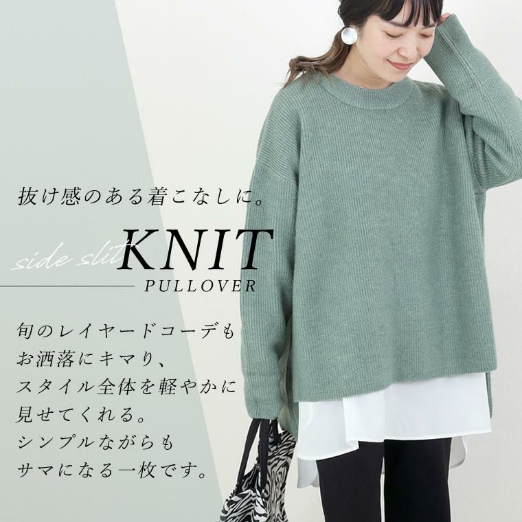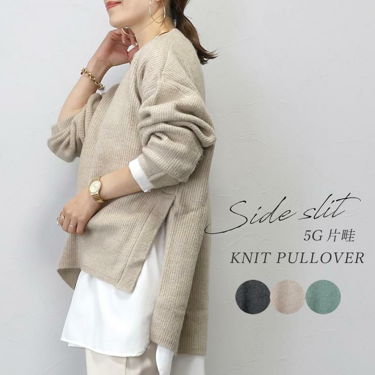 5G片畦サイドスリットニットプルオーバー サイドに旬のスリットを施した、シンプルながらもサマになる一枚。 シャープなスリットがあることでスタイル全体を軽やかに見せて くれ、抜け感漂う着こなしに。また、長め丈のシャツやカットソー をインに合わせたレイヤードもバランスよくお洒落にキマります。 ゆったりとした着心地で、ヒップまでしっかりカバーしてくれる 長めの後ろ丈もポイント。毛足の長い混ざり糸で編み上げ、 単色ながらも奥行きのある表情。高見えが狙え、 大人のニットコーデを格上げしてくれるアイテムです。 合わせるボトムを選ばず、着まわし力も抜群。