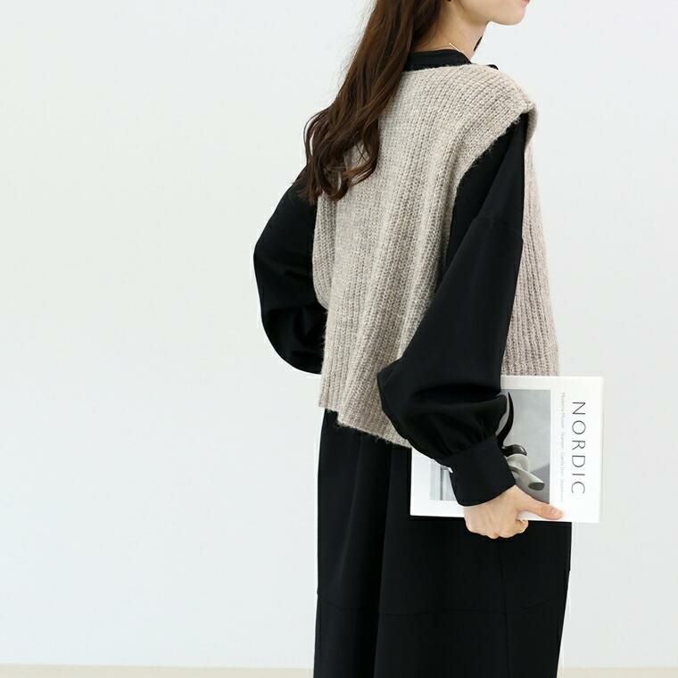 片畦編みミックスヤーンVネックベスト 【メール便不可】