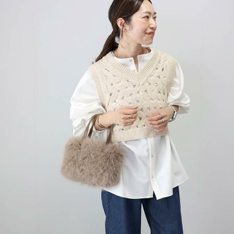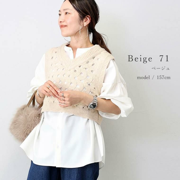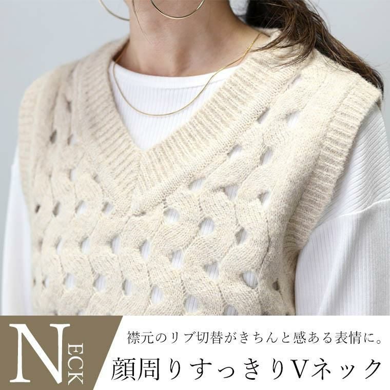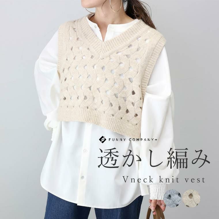 ベスト トップス ニット アルパカタッチ 起毛 Vネック 透かし編み ウェーブ レイヤード 重ね着 着やすい クロップド クロップド丈 ショート デコルテ シンプル キレイ見え きれいめ キレイめ 綺麗め 上品 楽ちん イージー イージー素材 ルーズ ゆるめ ゆったり リラックス おしゃれ お洒落 体型カモフラージュ 大人め 杢グレー グレー 灰色 ベージュ カラバリ豊富 大きめ 大きい ワンマイルウエア ワンマイルウェア レディースファッション 無地 ラクチン らくちん 楽ちん 動きやすい プラスサイズ 着痩せ 華奢見え 脚長 脚長効果 ゆったりサイズ ゆる すっきり カバー 体型カバー きちんと シンプル カジュアル ナチュラル ベーシック オフィス オフィスカジュアル テレワーク 会議 食事会 ランチ 女友達 参観日 二次会 飲み会 上品 知的 女性らしい 女らしい 着映え オンライン飲み会 着回し 大人 大人カジュアル オトナ 女性 綺麗 きれい キレイ キレイめ 高見え 上質 大きいサイズ 細見え 女性服 アースカラー フリーサイズ 楽 ノンストレス 動きやすい ゆったり 高級感 母の日 プレゼント ギフト 贈り物 S M L LL 2L XL 20代 30代 40代 50代 おしゃれ パ―ト バイト 仕事 仕事用 ユニフォーム 春夏 春 夏 秋冬 秋 冬 お洒落 オシャレ かわいい 可愛い カワイイ かっこいい カッコいい FUNNY COMPANY ファニーカンパニー ふぁにーかんぱにー ファニカン