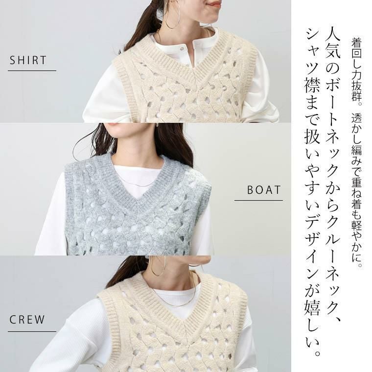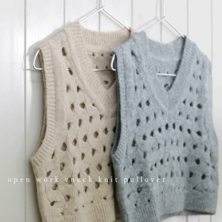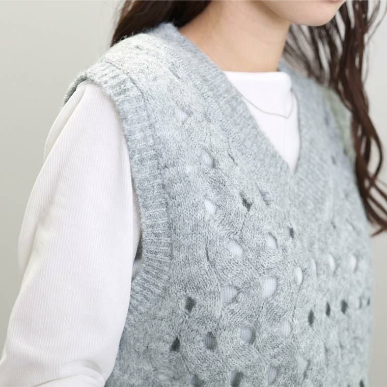 透かし編みVネックニットベスト
