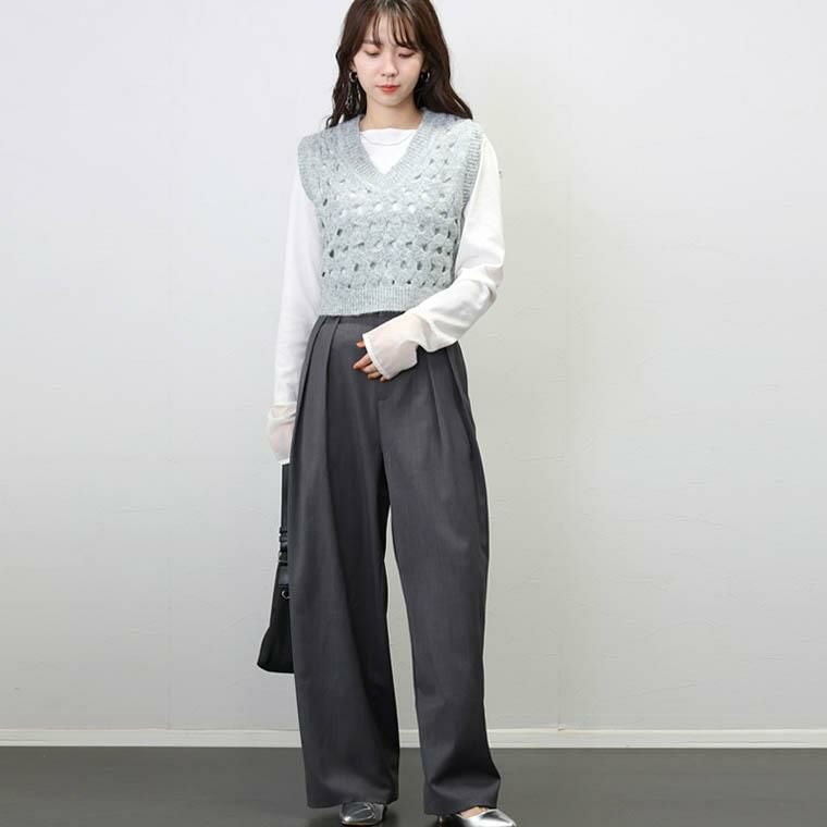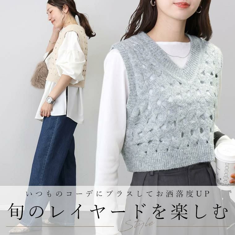 【旬のレイヤードスタイルを楽しめるニットベスト】