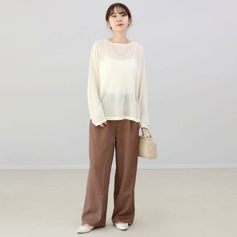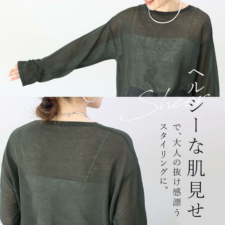 程よいシアー感が特徴のハイゲージニット。キャミと合わせて一枚で着たり、ワンピやベストのインナーとして着たりと着回しの効くベーシックなデザインです。上品な印象のクルーネックに、身幅と袖は広めに設計し、ゆるっと着られます。カットソー感覚で使えてお洒落度が増す頼れる基本アイテムです。