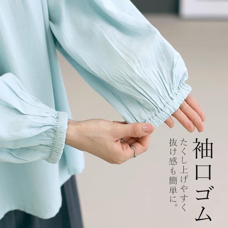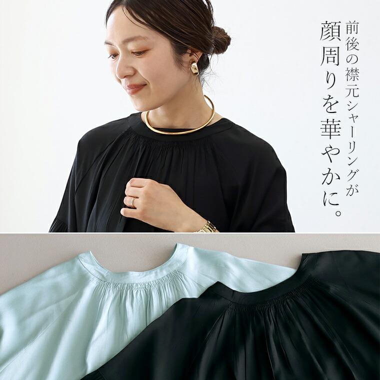 他の画像を見る シャーリングのシャツ袖が上品に着映えるデザイントップス シルケットスムース布帛袖切替ブラウスカットソー 【メール便可/ma1.5】 通常販売価格 ¥ 4,290 税込 カートに入れる お気に入りに登録する