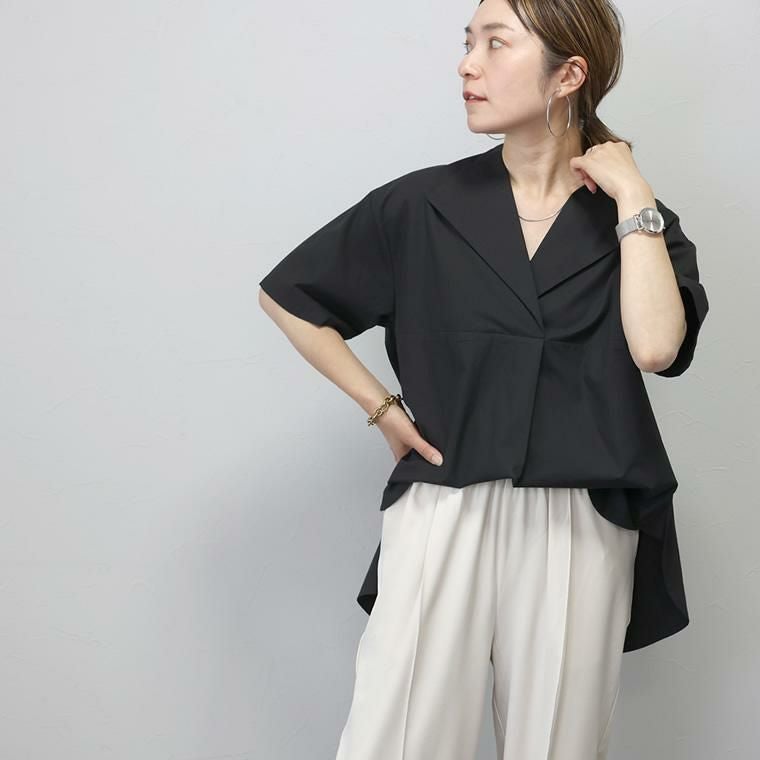 他の画像を見る オープンカラーが顔まわりを華やかに演出するデザインブラウス コットンポプリンオープンカラー半袖ブラウス 【メール便可/ma1.5】 ¥ 3,850 税込 カートに入れる お気に入りに登録する