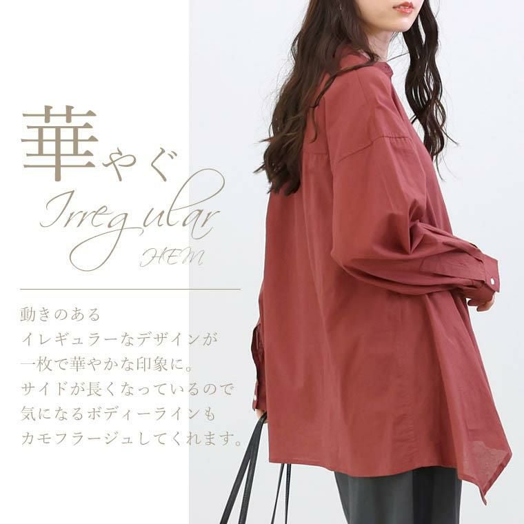 他の画像を見る 一枚でコーデの主役に イレギュラーな裾デザインが華やかな綿ブラウス キャンブリックコットンイレギュラーヘムバンドカラーシャツ 【メール便可/ma3】 ¥ 3,300 税込 カートに入れる お気に入りに登録する