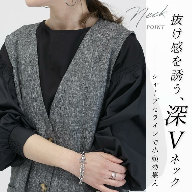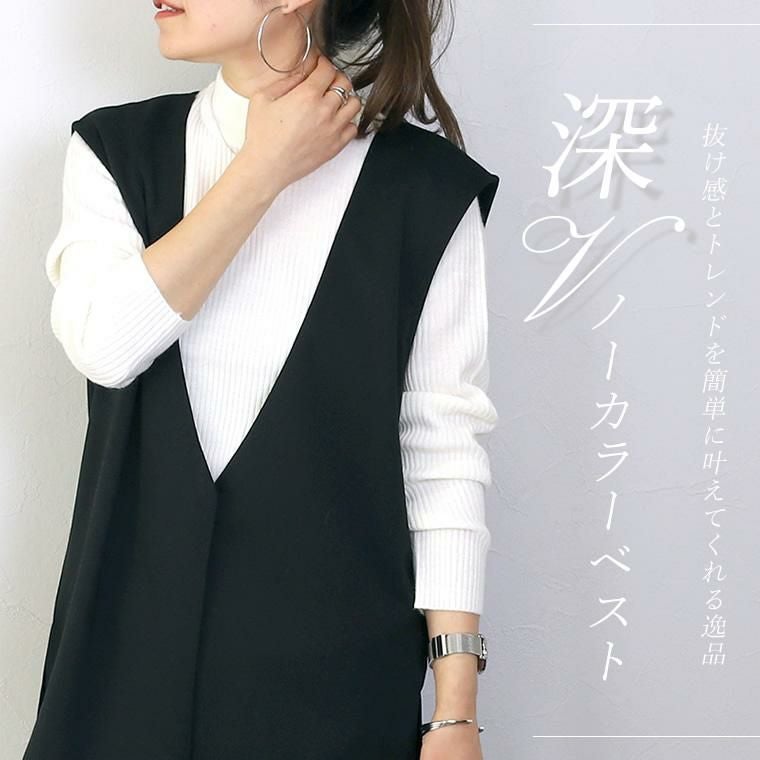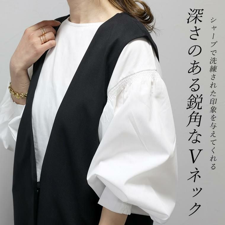 他の画像を見る 旬スタイルが手に入る 人気のポンチ素材で仕立てたノーカラーベスト 期間限定セール★ポンチ後ろタック深Vベスト 【メール便可/ma2】 【返品交換不可】 定価 ¥ 3,630 のところ ¥ 2,200 税込 販売開始前です。 販売期間 2026/03/03 20:00 〜 2026/03/11 1:59 カートに入れる お気に入りに登録する