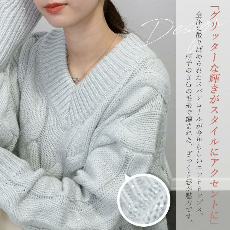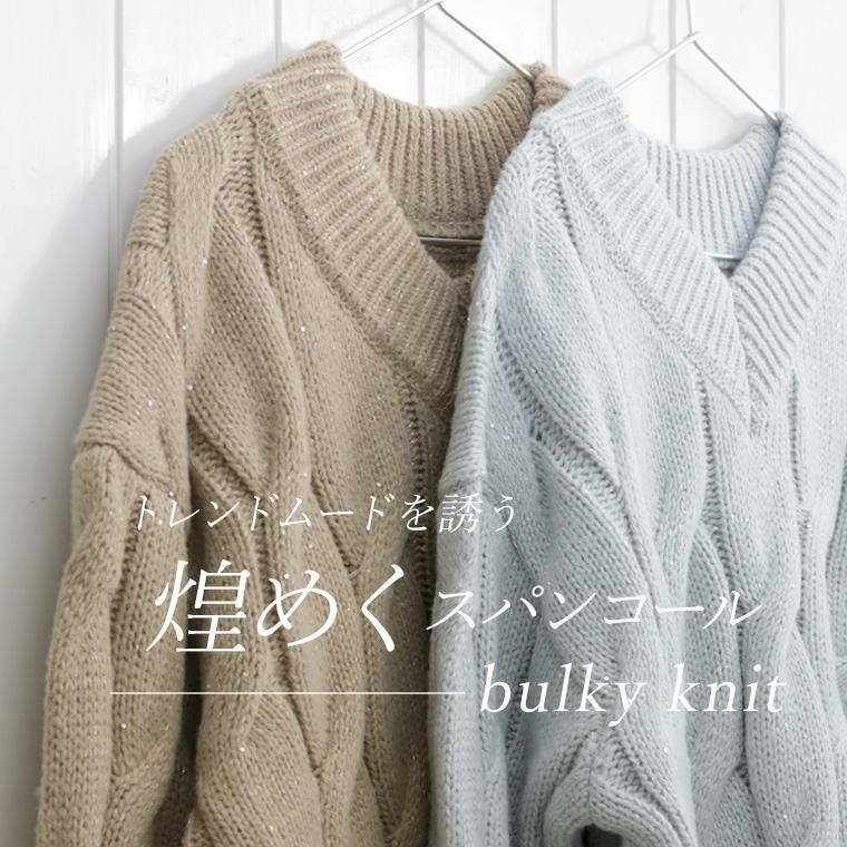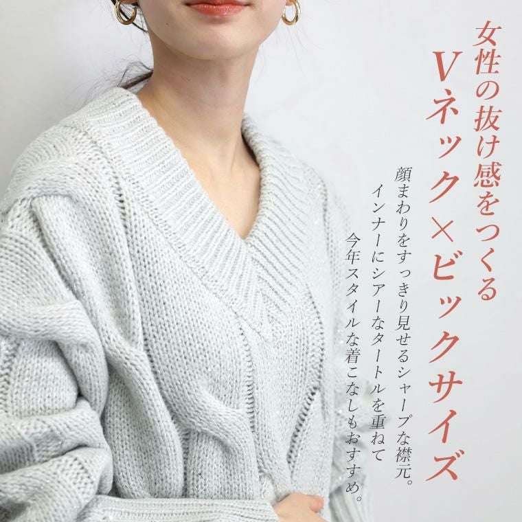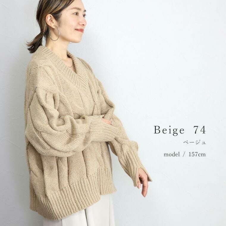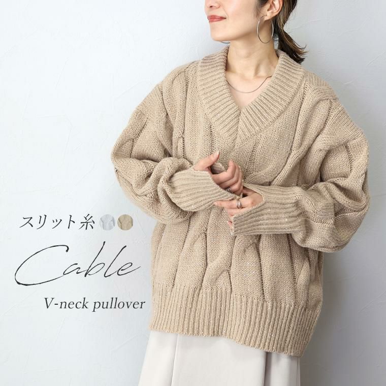 他の画像を見る スパンコールのグリッターな輝きが魅力のバルキーニット クリアランスセール★スリット糸ケーブル編みVネックプルオーバー 【メール便不可】 【返品交換不可】 ¥ 1,650 税込 カートに入れる お気に入りに登録する