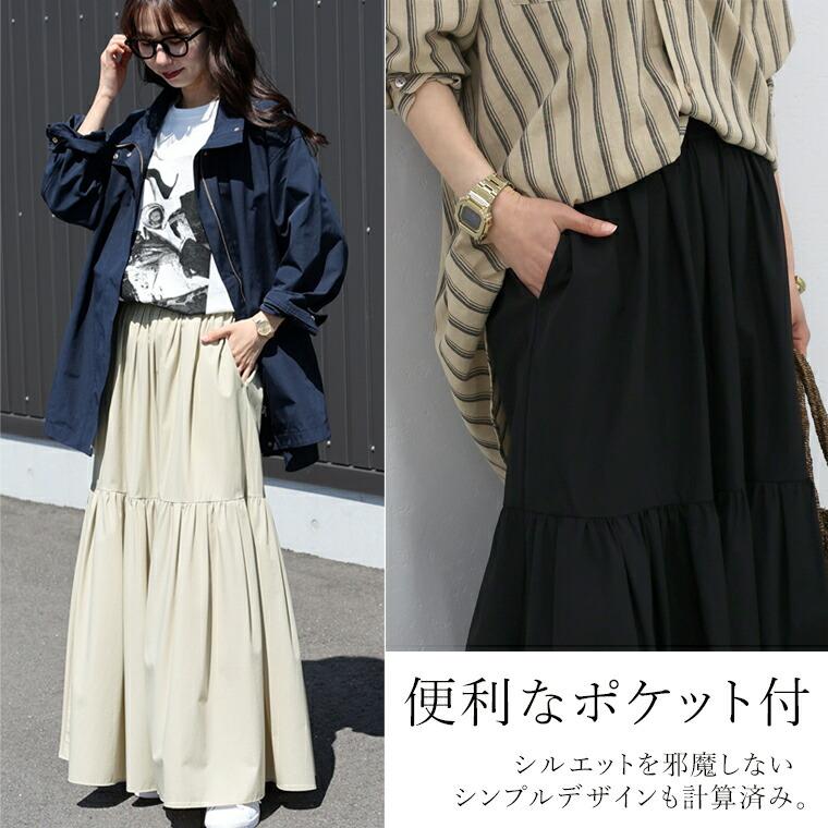 【撥水・UV加工】ティアードロングスカート 【メール便可/ma3】