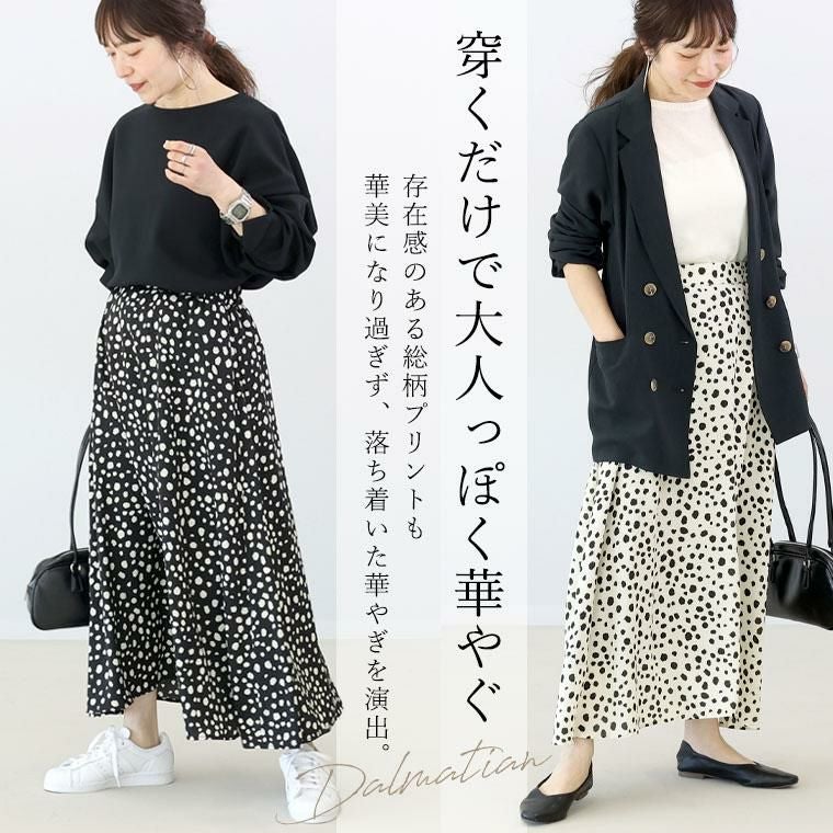 大人っぽく華やかに旬コーデを彩る 上品ダルメシアン柄フレアスカート