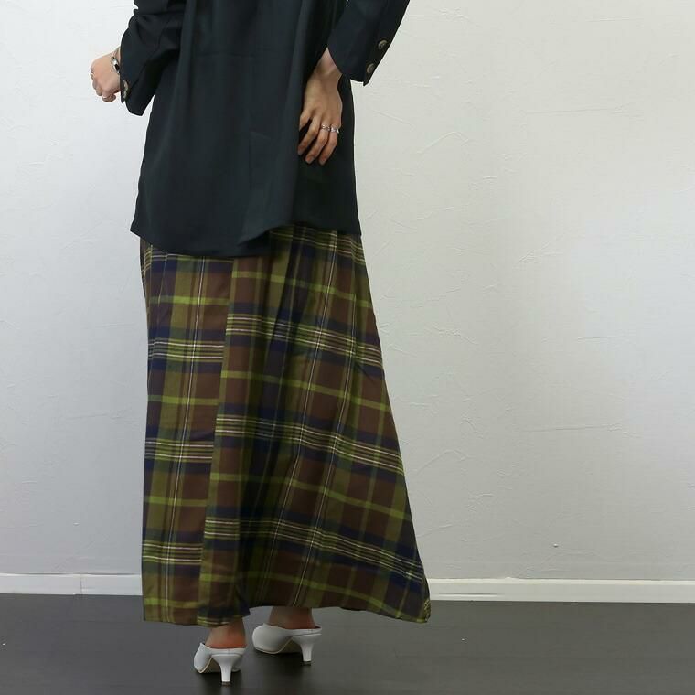 コーディネートを華やげる チェック柄×フレアシルエットのロングスカート