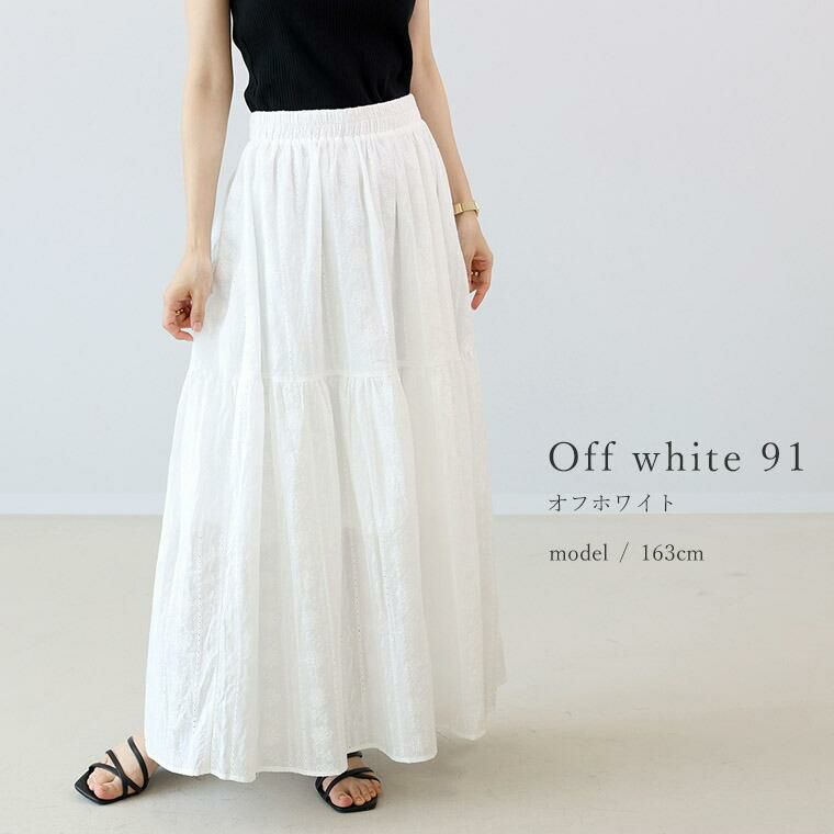 ボトムス スカート ロングスカート コットン レース ティアード 刺繍 ウエストゴム きれいめ キレイめ 綺麗め 上品 おしゃれ お洒落 大人め ブラック 黒 くろ オフホワイト 白 カラバリ豊富 大きめ 大きい ワンマイルウエア ワンマイルウェア レディースファッション 無地 ラクチン らくちん 楽ちん 動きやすい プラスサイズ 着痩せ 華奢見え 脚長 脚長効果 ゆったりサイズ ゆる すっきり カバー 体型カバー きちんと シンプル カジュアル ナチュラル ベーシック オフィス オフィスカジュアル テレワーク リモートワーク リモート 会議 食事会 ランチ 女友達 参観日 二次会 飲み会 上品 知的 女性らしい 女らしい 着映え オンライン飲み会 着回し 大人 大人カジュアル オトナ 女性 綺麗 きれい キレイ キレイめ 高見え 上質 上品 大きめ 大きい 大きいサイズ 体型カバー 華奢見え 着痩せ 細見え 着回し 大人 大人カジュアル オトナ 女性 綺麗 女性 女性服 アースカラー フリーサイズ レディースファッション ラクチン 楽 らくちん 楽ちん ノンストレス 動きやすい プラスサイズ 着回し プラスサイズ ゆったり ゆったりサイズ ゆる すっきり シンプル 無地 きれい キレイ きれいめ キレイめ 高見え 上質 高級感 母の日 プレゼント ギフト 贈り物 S M L LL 2L XL 20代 30代 40代 50代 おしゃれ パ―ト バイト 仕事 仕事用 ユニフォーム 春夏 春 夏 秋冬 秋 冬 お洒落 オシャレ かわいい 可愛い カワイイ かっこいい カッコいい FUNNY COMPANY ファニーカンパニー ふぁにーかんぱにー ファニカン