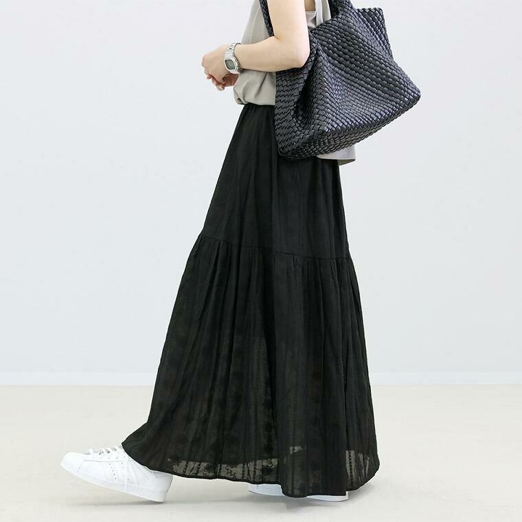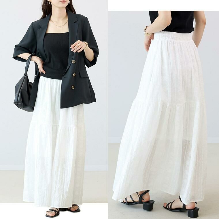 【コットン刺繍生地を贅沢に使ったティアードスカート】