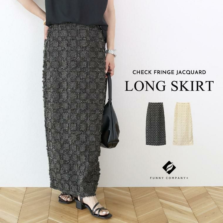 ボトムス スカート ロングスカート チェック フリンジ ジャガード Iライン きれいめ キレイめ 綺麗め 上品 おしゃれ お洒落 大人め チャコール アイボリー カラバリ豊富 大きめ 大きい ワンマイルウエア ワンマイルウェア レディースファッション 無地 ラクチン らくちん 楽ちん 動きやすい プラスサイズ 着痩せ 華奢見え 脚長 脚長効果 ゆったりサイズ ゆる すっきり カバー 体型カバー きちんと シンプル カジュアル ナチュラル ベーシック オフィス オフィスカジュアル テレワーク リモートワーク リモート 会議 食事会 ランチ 女友達 参観日 二次会 飲み会 上品 知的 女性らしい 女らしい 着映え オンライン飲み会 着回し 大人 大人カジュアル オトナ 女性 綺麗 きれい キレイ キレイめ 高見え 上質 上品 大きめ 大きい 大きいサイズ 体型カバー 華奢見え 着痩せ 細見え 着回し 大人 大人カジュアル オトナ 女性 綺麗 女性 女性服 アースカラー フリーサイズ レディースファッション ラクチン 楽 らくちん 楽ちん ノンストレス 動きやすい プラスサイズ 着回し プラスサイズ ゆったり ゆったりサイズ ゆる すっきり シンプル 無地 きれい キレイ きれいめ キレイめ 高見え 上質 高級感 母の日 プレゼント ギフト 贈り物 S M L LL 2L XL 20代 30代 40代 50代 おしゃれ パ―ト バイト 仕事 仕事用 ユニフォーム 春夏 春 夏 秋冬 秋 冬 お洒落 オシャレ かわいい 可愛い カワイイ かっこいい カッコいい FUNNY COMPANY ファニーカンパニー ふぁにーかんぱにー ファニカン