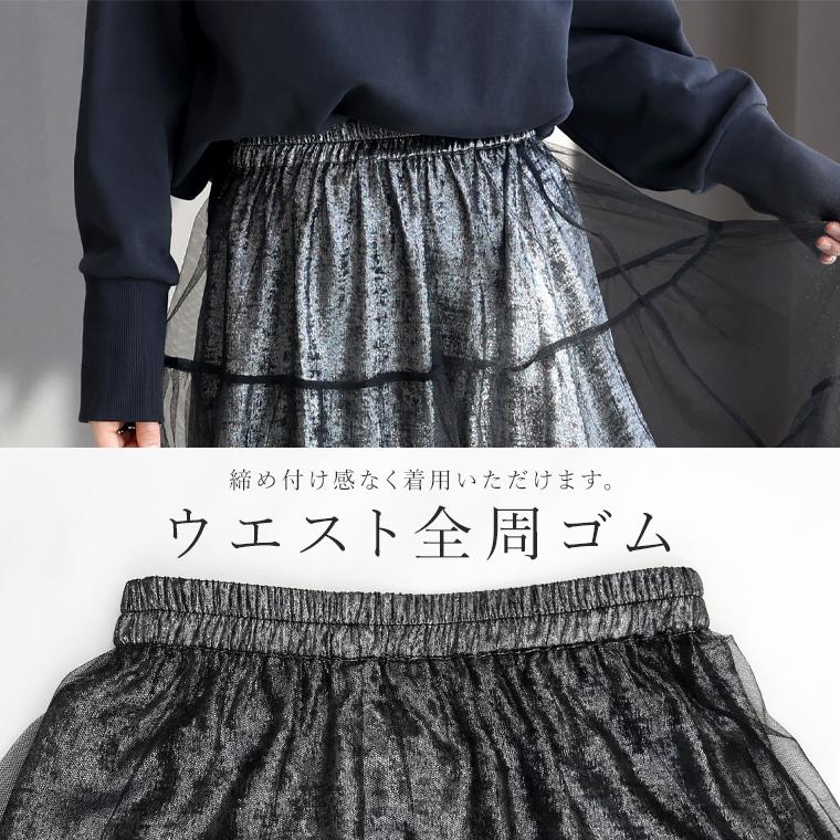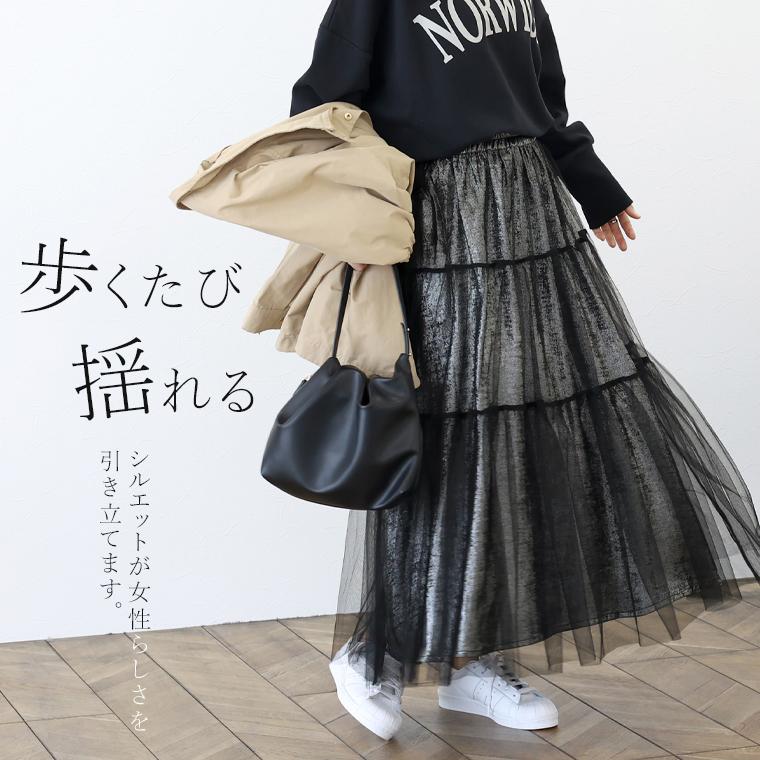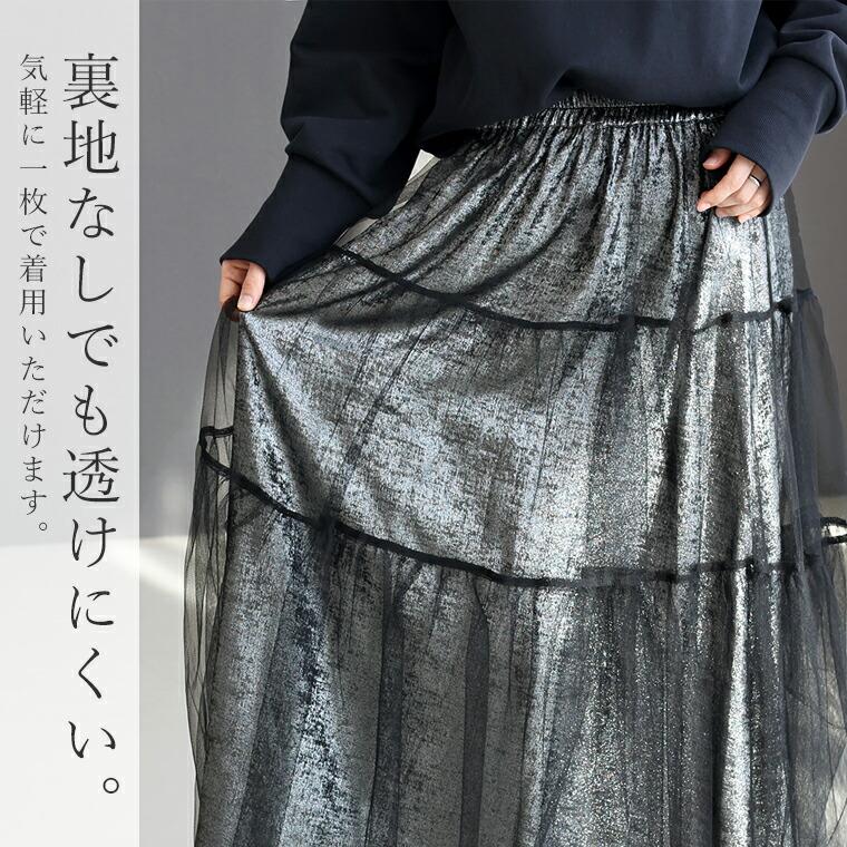 ボトムス スカート ロングスカート メタリック チュール ティアード フレア ウエストゴム レイヤード 30代 40代 きれいめ キレイめ 綺麗め 上品 おしゃれ お洒落 大人め ブラック 黒 くろ カラバリ豊富 大きめ 大きい ワンマイルウエア ワンマイルウェア レディースファッション 無地 ラクチン らくちん 楽ちん 動きやすい プラスサイズ 着痩せ 華奢見え 脚長 脚長効果 ゆったりサイズ ゆる すっきり カバー 体型カバー きちんと シンプル カジュアル ナチュラル ベーシック オフィス オフィスカジュアル テレワーク リモートワーク リモート 会議 食事会 ランチ 女友達 参観日 二次会 飲み会 上品 知的 女性らしい 女らしい 着映え オンライン飲み会 着回し 大人 大人カジュアル オトナ 女性 綺麗 きれい キレイ キレイめ 高見え 上質 上品 大きめ 大きい 大きいサイズ 体型カバー 華奢見え 着痩せ 細見え 着回し 大人 大人カジュアル オトナ 女性 綺麗 女性 女性服 アースカラー フリーサイズ レディースファッション ラクチン 楽 らくちん 楽ちん ノンストレス 動きやすい プラスサイズ 着回し プラスサイズ ゆったり ゆったりサイズ ゆる すっきり シンプル 無地 きれい キレイ きれいめ キレイめ 高見え 上質 高級感 母の日 プレゼント ギフト 贈り物 S M L LL 2L XL 20代 50代 おしゃれ パ―ト バイト 仕事 仕事用 ユニフォーム 春夏 春 夏 秋冬 秋 冬 お洒落 オシャレ かわいい 可愛い カワイイ かっこいい カッコいい FUNNY COMPANY ファニーカンパニー ふぁにーかんぱにー ファニカン